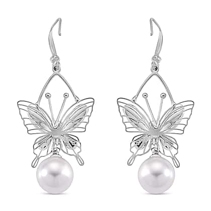 Encapsulating the beauty of butterflies in these awe-inspiring creations, these dangling earrings paint a dreamy picture. It features an open, geometric frame with a sculpted butterfly motif adorned with a white pearl drop at the end. These butterfly earrings feature intricate rings made with resin and can symbolise transformation, freedom, and empowerment-all qualities are synonymous with a butterfly. Crafted in white brass, polished with silver, these earrings evoke a sense of a butterfly flying in mid-air. This helps to lend a sense of movement and dynamism to the design. While the sculpted detailing helps to add a geometric feel to the design. These dangling earrings are perfect for individuals who adore romantic and playful jewellery styles.