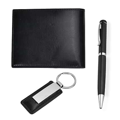 3 Piece Set of Gift Boxes For Men (Ballpoint Pen - Keychain - Wallet) - Black
