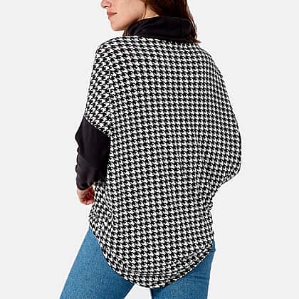 Nova Of Londn - Houndstooth Printed Roll Neck Jumper (Size S-M) - Black & Ivory Size 8-12