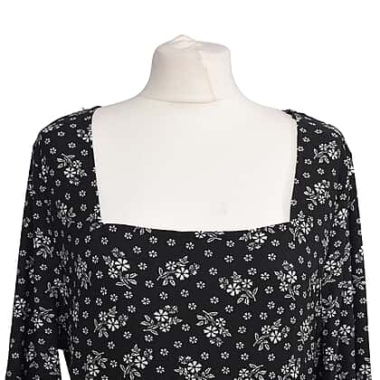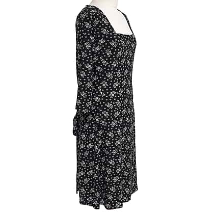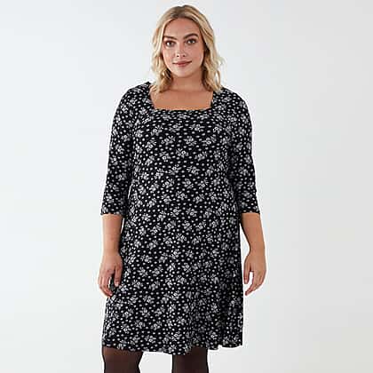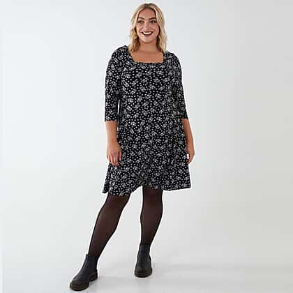 NOVA OF LONDON Floral Pattern Square Neck Swing Dress (Size 18) - Black
