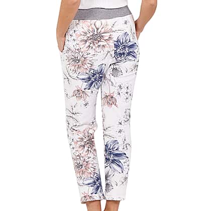 NOVA OF LONDON Flower Print Jersey Trousers (Size up to 16) in Cream