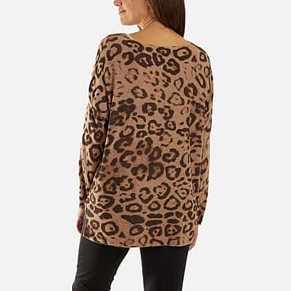 NOVA OF LONDON Leopard Pattern Knitted Jumper (One Size 8-18) - Camel