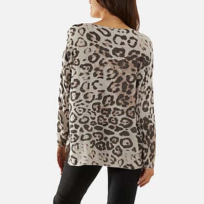NOVA OF LONDON Leopard Pattern Knitted Jumper (One Size 8-18) - Stone