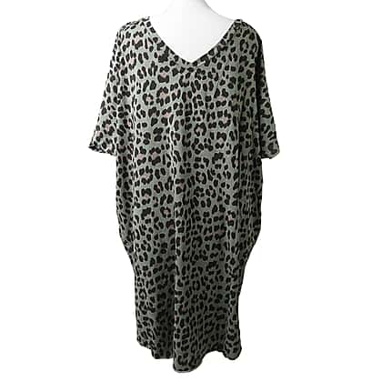 Nova of London Off Shoulder Leopard Print V-Neck Oversized Dress in Beige (Length 92cm) (Size up to 20)