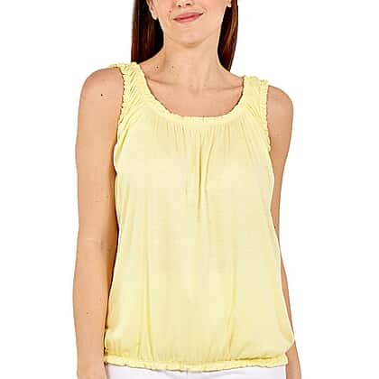 This women's vest has come in a lemon shade that makes it perfect for summer days. Made from super-soft and lightweight fabric to keep you comfortable and offers breathable comfort throughout the day. Designed with elastic hemline to provide an irritation-free experience. Mix and match this women's vest with denim jeans or leggings for a fashion-forward edge.