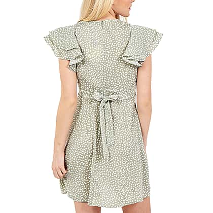 Nova of London Wrap Front Frill Sleeve Dress in Mint Colour