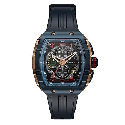 Nubeo Magellan Chronograph Blue Dial 5 ATM Water Resistant Watch with Rubber Strap