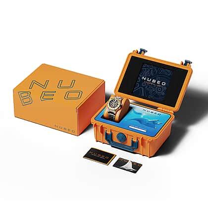 Immerse yourself in haute horology with the Nubeo Manta Tourbillon Two-Tone Dial Watch. The exquisite two-tone dial showcases unparalleled craftsmanship, featuring a mesmerising tourbillon movement. With an impressive 20 ATM water resistance, this timepiece is ready for any aquatic adventure. The stainless steel bracelet adds a touch of elegance and durability.