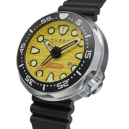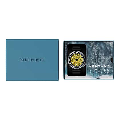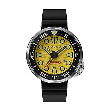 Nubeo Ventana Automatic Limited Edition Japanese Movement Yellow Dial 100 ATM Water Resistant Watch with Silicon Strap