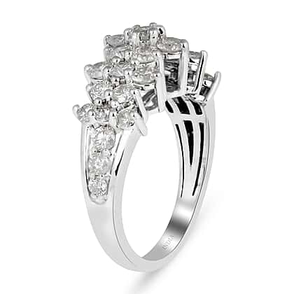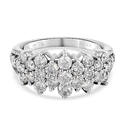 NY Close Out 14K White Gold Diamond (I2-GH) Cluster Ring 1.25 Ct.