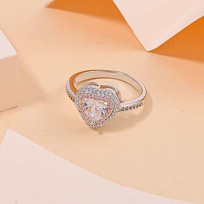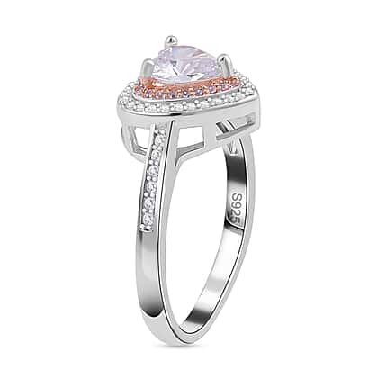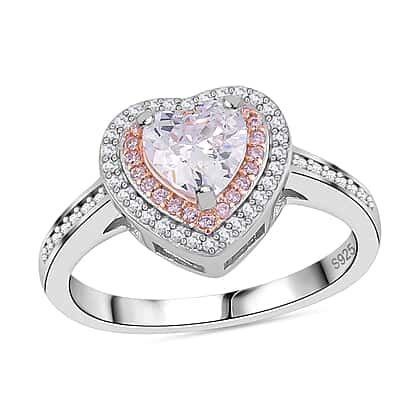 NY Close Out Deal - White & Pink Cubic Zirconia Heart Ring in Two Tone Plated Sterling Silver