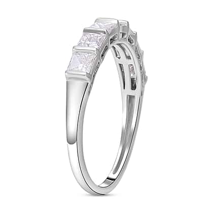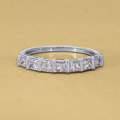 Give your fingers a dazzling look with this gorgeous diamond half eternity ring. This 7-stone ring is decorated with square-shaped diamonds, secured in a bar setting in the 14K white gold frame. It has a sleek shank design and smooth back gallery to give you a comfortable fit. Make your special moments more special by adorning this beautiful ring or gift it to your loved ones.