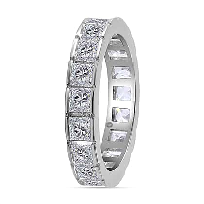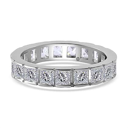 White Cubic Zirconia Ring in Rhodium Overlay Sterling Silver 4.97 ct 4.970 Ct.