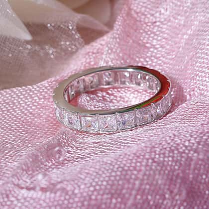 NY Closeout - Cubic Zirconia Band Ring in Rhodium Overlay Sterling Silver