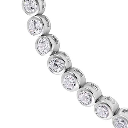 NY Closeout- Cubic Zirconia Bracelet (Size - 7) in Rhodium Overlay Sterling Silver 6.38 Ct, Silver Wt. 9.41 Gms