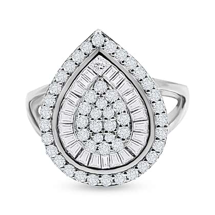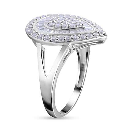 NY Closeout- Cubic Zirconia Teardrop Cocktail Ring in Rhodium Overlay Sterling Silver