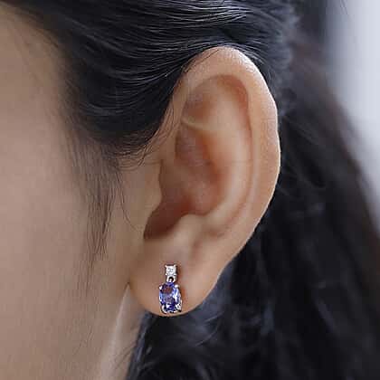 9K White Gold Tanzanite & Moissanite Earrings 1.50 Ct