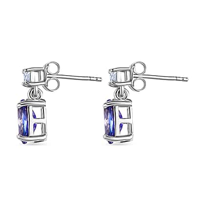 9K White Gold Tanzanite and Moissanite Drop Earrings 1.50 Ct