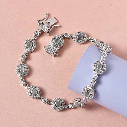 Alexandrite and Natural Cambodian Zircon Cluster Bracelet (Size - 7.5) in Platinum Overlay Sterling Silver 5.94 Ct, Silver Wt. 11.00 Gms