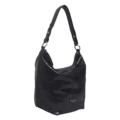 Assots London Genuine Leather Hilary Hobo Bag (Size 42x34x15 Cm) - Black