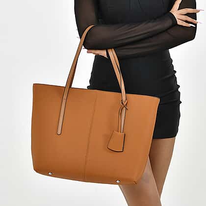 Rome Closeout Genuine Leather Solid Tote Bag - Tan