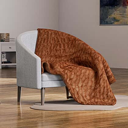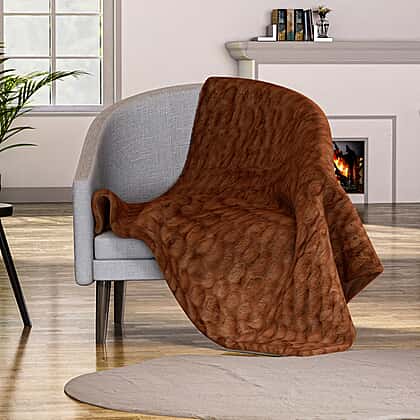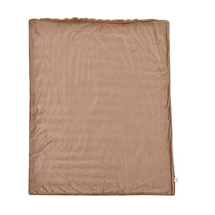 Ruched Faux Rabbit Fur with Velour Double Layer Blanket (Size 152x127 cm) - Brown