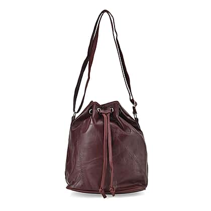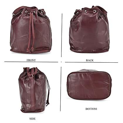 One Time Closeout - 100% Genuine Leather Bucket Bag (Size 29x23x15 cm)(Size 29x23x15 cm) - Burgundy