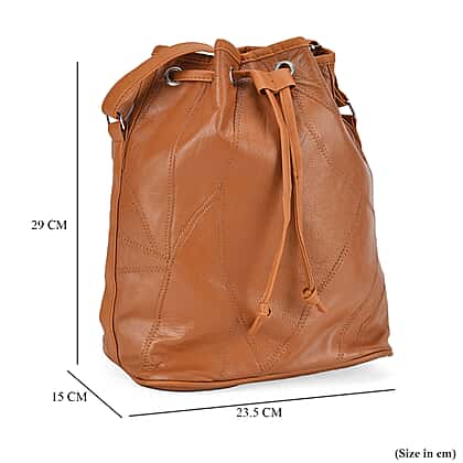 One Time Closeout - 100% Genuine Leather Bucket Bag (Size 29x23x15 cm)(Size 29x23x15 cm) - Tan
