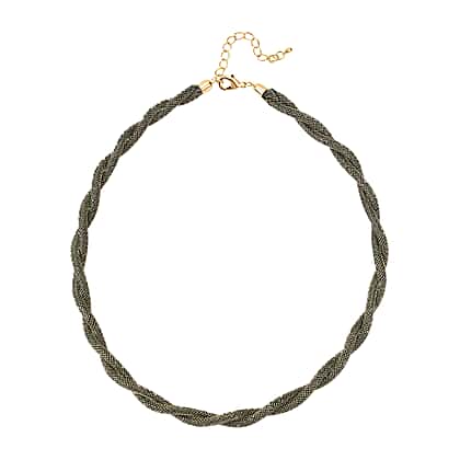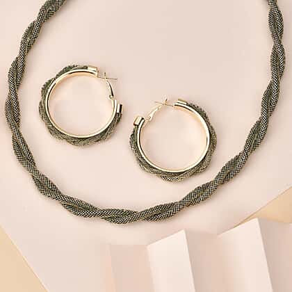 One Time Closeout - 2 Piece Set - Green Austrian Tuscan Croche Hoop Earrings and Necklace (Size 20-2 Ext)