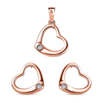 One Time Closeout 2 Piece Set - Diamond Heart Earrings and Pendant