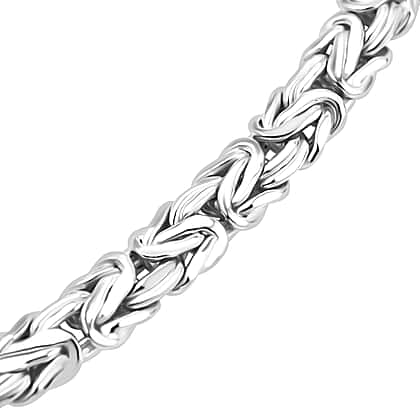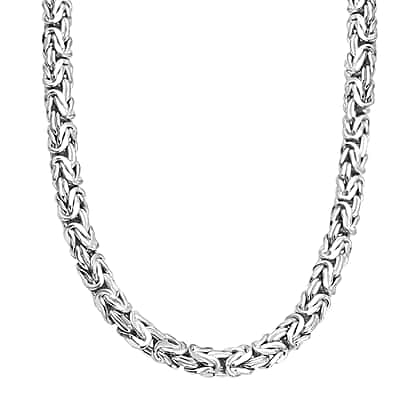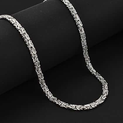 This Rhodium Overlay Sterling Silver Byzantine Chain is a symbol of Intricate craftsmanship and rich historical heritage. It draws a rich, textured look from its intricately detailed weave pattern that is both bold and elegant. The complex weave, crafted out of premium silver, exudes a sense of luxury and sophistication. The interlocked links create a strong and durable chain that gets a glistening shine from Rhodium Overlay.