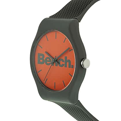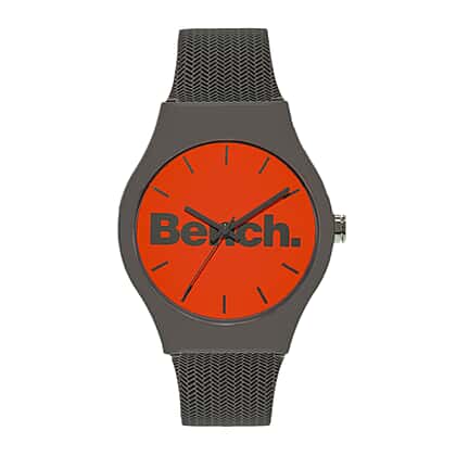 One Time Closeout Deal- BENCH Orange Dial 3 ATM Water Resistant Watch with Grey Colour Silicone Strap