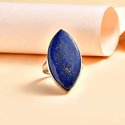 - Lapis Lazuli is cut in a marquise shape with a well-defined outline of a leaf