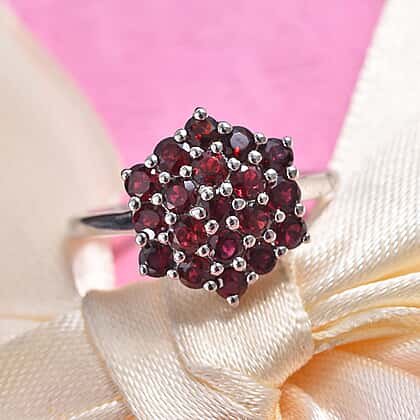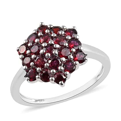 1.50 Ct Pyrope Garnet Cluster Ring in Platinum Plated Sterling Silver