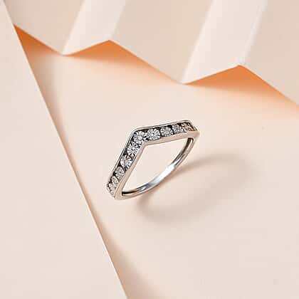 Grab this One Time Deal before time runs out! The Diamond Wishbone Ring looks spectacular in Platinum Overlay Sterling Silver. The ring features 5 diamond rounds that are faceted for maximum brilliance. The channel-set diamonds shine brilliantly from inside their safe enclosures bathing you in their natural radiance.