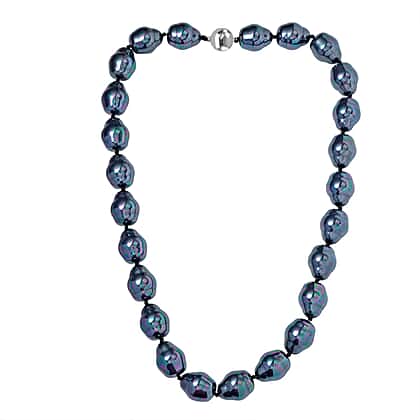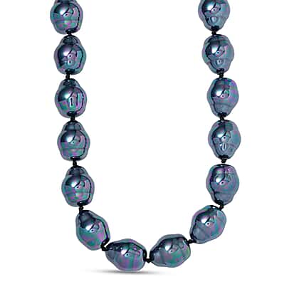 Drape yourself in the luminous elegance of our peacock colour shell pearl necklace, a treasure crafted with baroque pearls for an exquisite touch of luxury. Each pearl is intricately strung on durable thread, culminating in a 20-inch cascade of iridescence. The magnetic clasp, made of rhodium overlay on sterling silver, ensures secure fastening, and keeps the necklace in place.