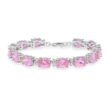 Simulated Pink Sapphire and Simulated Diamond Tennis Bracelet in Silver Plated 7 with 1 inch Extender