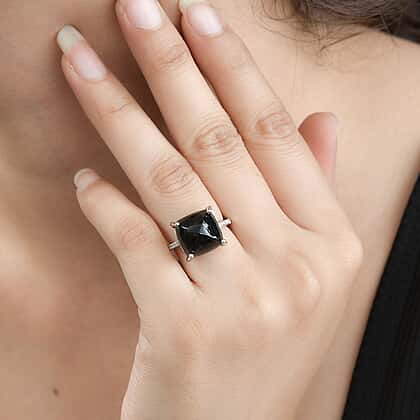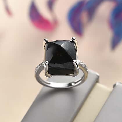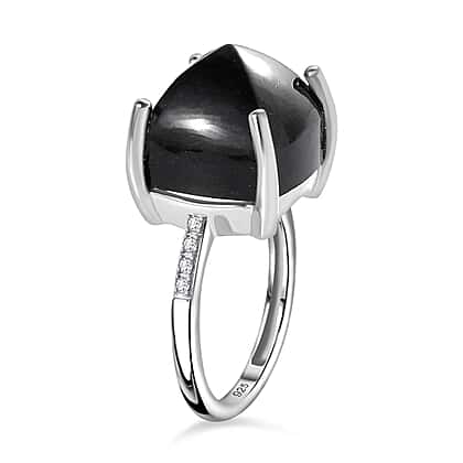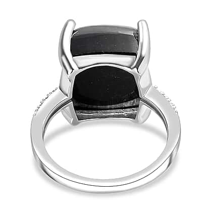 One Time Deal Black Jade & Natural Zircon Ring in Platinum Overlay Sterling Silver 11.75 Ct