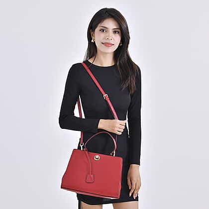 One Time Designer Closeout Deal - Genuine Leather Crossbody Bag - Red