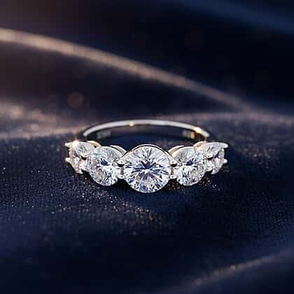 One Time Mega Buy-Moissanite Open Set Ring VS-EF in Rhodium Overlay Sterling Silver 4.15 Ct.