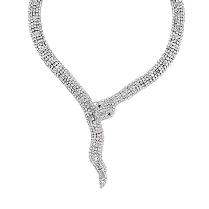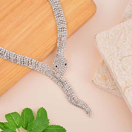 This Serpent Necklace set with over 200 Austrian Crystals is a bold statement of allure and mystery. The necklace features a serpent design, adorned with sparkling crystals, representing transformation and renewal. Its intricate detailing and captivating look make it a standout piece for its symbolism and craftsmanship.