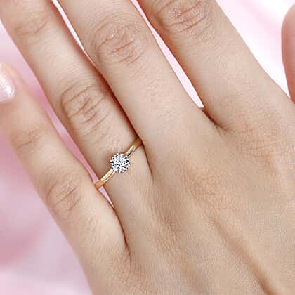 - This stunning solitaire ring features a 14K yellow gold band set with a single round-cut diamond