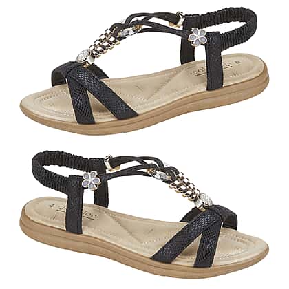 OPHELIA Flat Embellished Ladies Sandal (Size 3) - Black