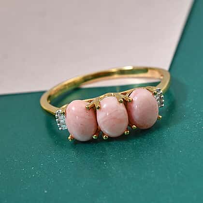 Oregon Sunrise Peach Opal and Diamond Ring in 14K Gold Plated Sterling Silver