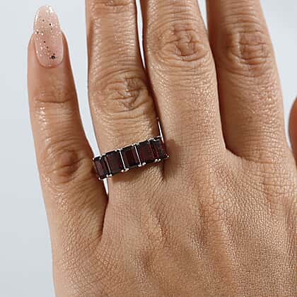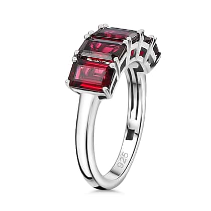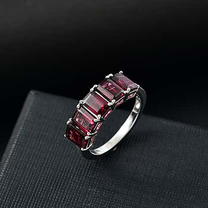 Orissa Natural Rhodolite Garnet 5 Stone Ring in Rhodium Overlay Sterling Silver 3.66 Ct.