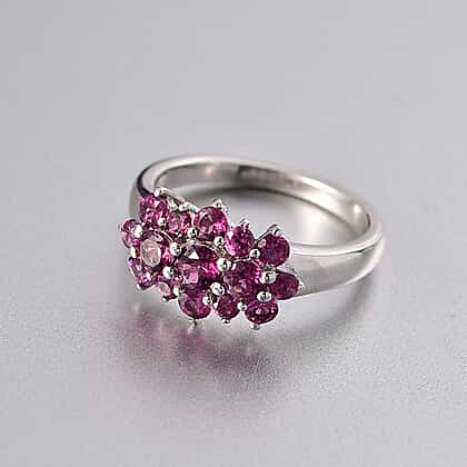 Orissa Natural Rhodolite Garnet Ring in Rhodium Overlay Sterling Silver 1.48 Ct.