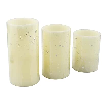 3 Pcs Speckled LED Candle Set with Remote - Hand Made with Wax (6 X AA Battery not Included)