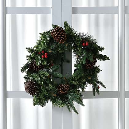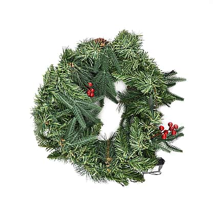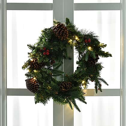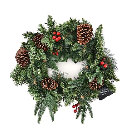 45cm Christmas Wreath with 30 LED String Lights - Pine Cone