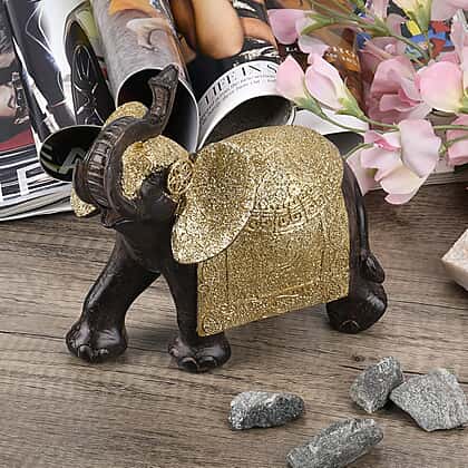 The Handcrafted Decorative Elephant Figurine will leave a warm and welcoming touch to your home decor. The elephant figurine is crafted from resin which is durable and does not chip or break easily. The lovely artwork is a result of hours of handcrafting by a skilled artisan. The combination of tan and gold enhances the regal appeal of the decorative item.