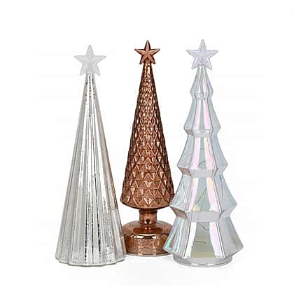 Christmas Decoration - Set of 3 Trees with LED Lights - Glass Cone Designs